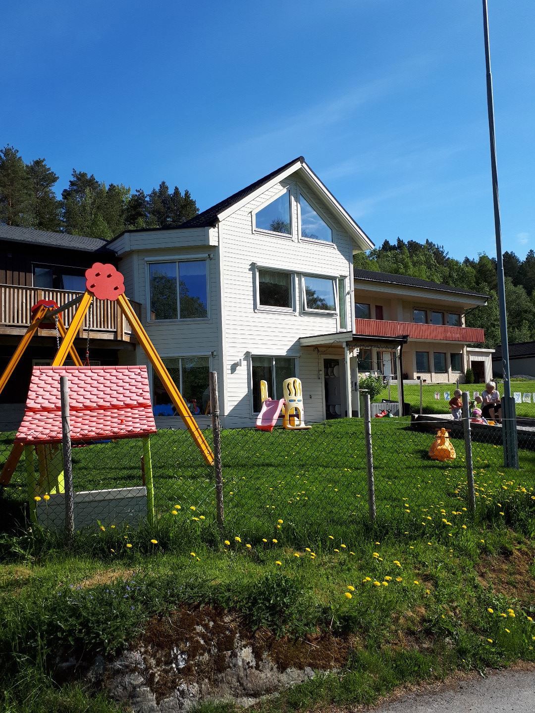 Barnehagen ligg i naturskjønne omgjevnadar på Nyvoll i Hornindal kommune. Her er det skog og mark tett på oss, og vi har rikeleg med turstadar i nærmiljøet. På barnehagen sitt uteområde har vi blant anna leikestativ, klatrestativ, huskestativ, sandkasser, ulike vippedyr og fleire leikehytter. I tillegg brukar vi aktivt Bjørneskogen vår som ligg like ved barnehagen, der barnehagen har bygd ein stor gapahuk.